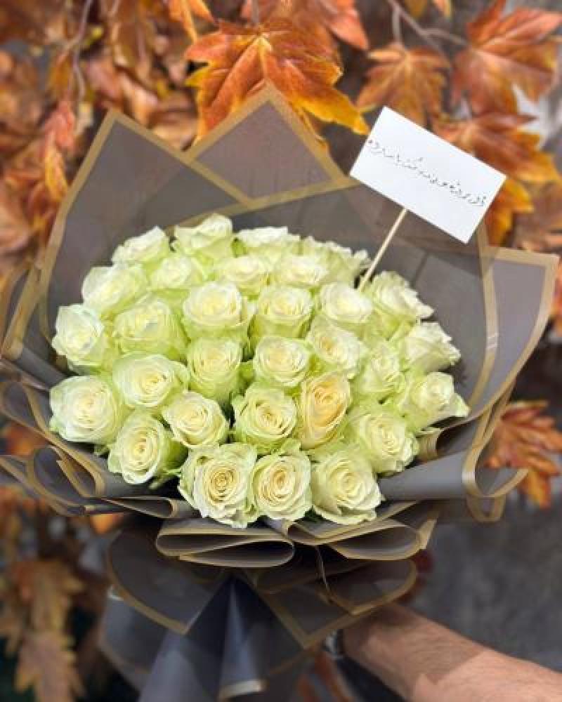 باقة مكونة من 30 وردة جوري بيضاء تعكس الأناقة والنقاء في أبسط وأبهى صورها. هذه الباقة مثالية للمناسبات التي تتطلب تعبيرًا عن الصفاء والسلام، مثل التهنئة بالمناسبات السعيدة، تقديم الاعتذار، أو حتى لإضفاء لمسة من الفخامة في أي مكان.